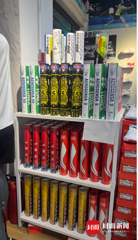 摆在货架上的筒装羽毛球(封面新闻记者拍摄)