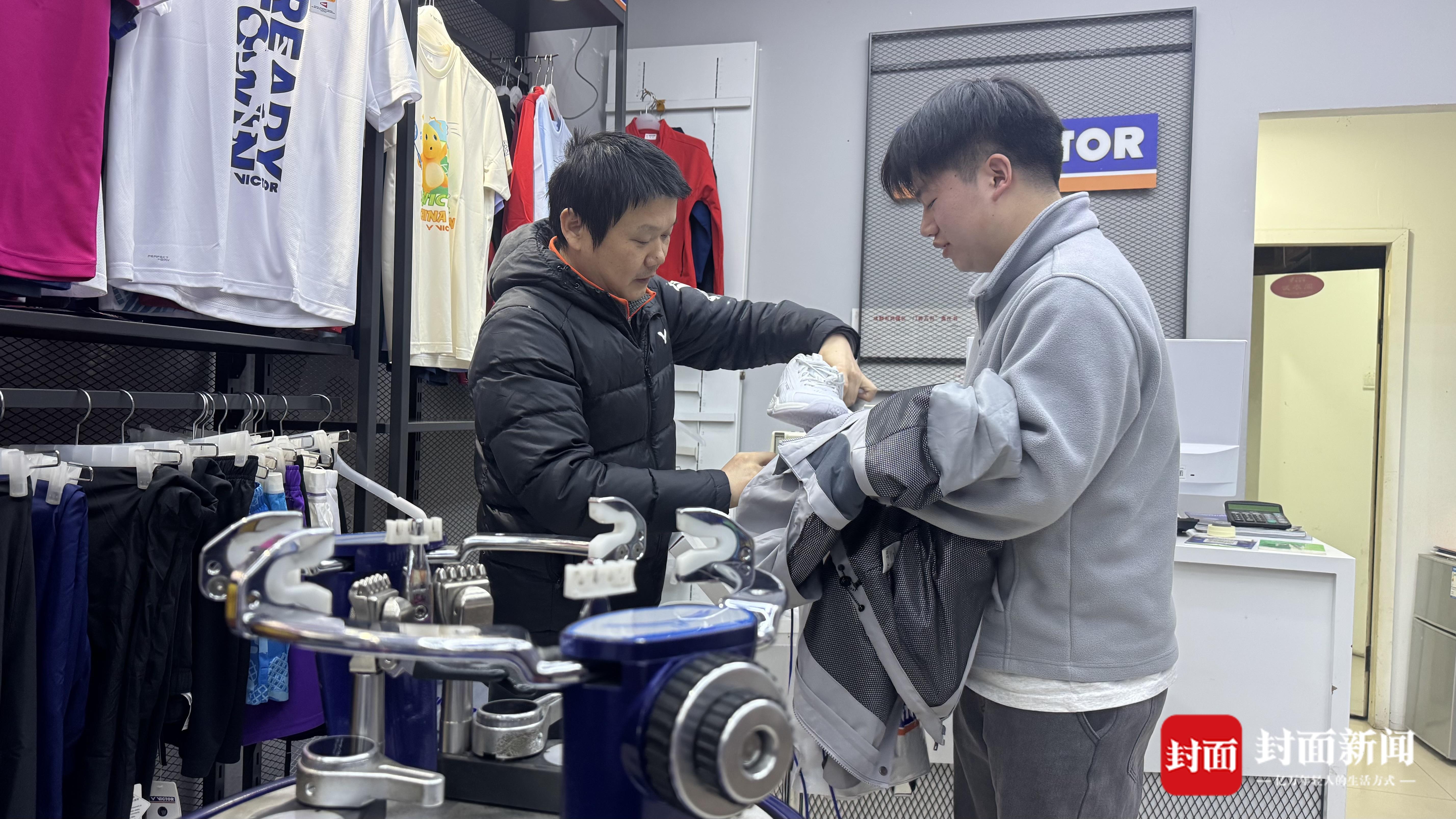 一家羽毛球门店,消费者在购买装备(封面新闻记者拍摄)