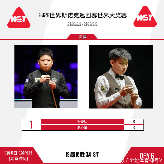 北京本事2月8日音讯体育赛事直播,2026年斯诺克寰宇大奖赛授课冠军争夺战,由赵心童对阵张安达。半决赛,世锦赛冠军赵心童、国锦赛冠军张安达别离以以6-3、6-5投降肖国栋、周跃龙晋级决赛。冠军战,将从今天13:00打响,两个阶段完成19局10胜的较量。
